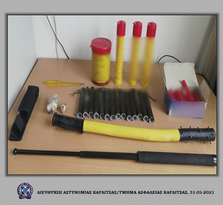 Ειδικότερα, ύστερα από κατάλληλη αξιοποίηση στοιχείων σχετικά με μετάβαση φιλάθλων τοπικής ομάδας της Καρδίτσας σε πόλη της Κεντρικής Μακεδονίας, στο πλαίσιο ποδοσφαιρικού αγώνα, αστυνομικοί της Διεύθυνσης Αστυνομίας Καρδίτσας τους εντόπισαν να επιβαίνουν σε ένα λεωφορείο και ένα Ι.Χ. επιβατικό αυτοκίνητο, στο εσωτερικό των οποίων βρέθηκαν συνολικά και κατασχέθηκαν: