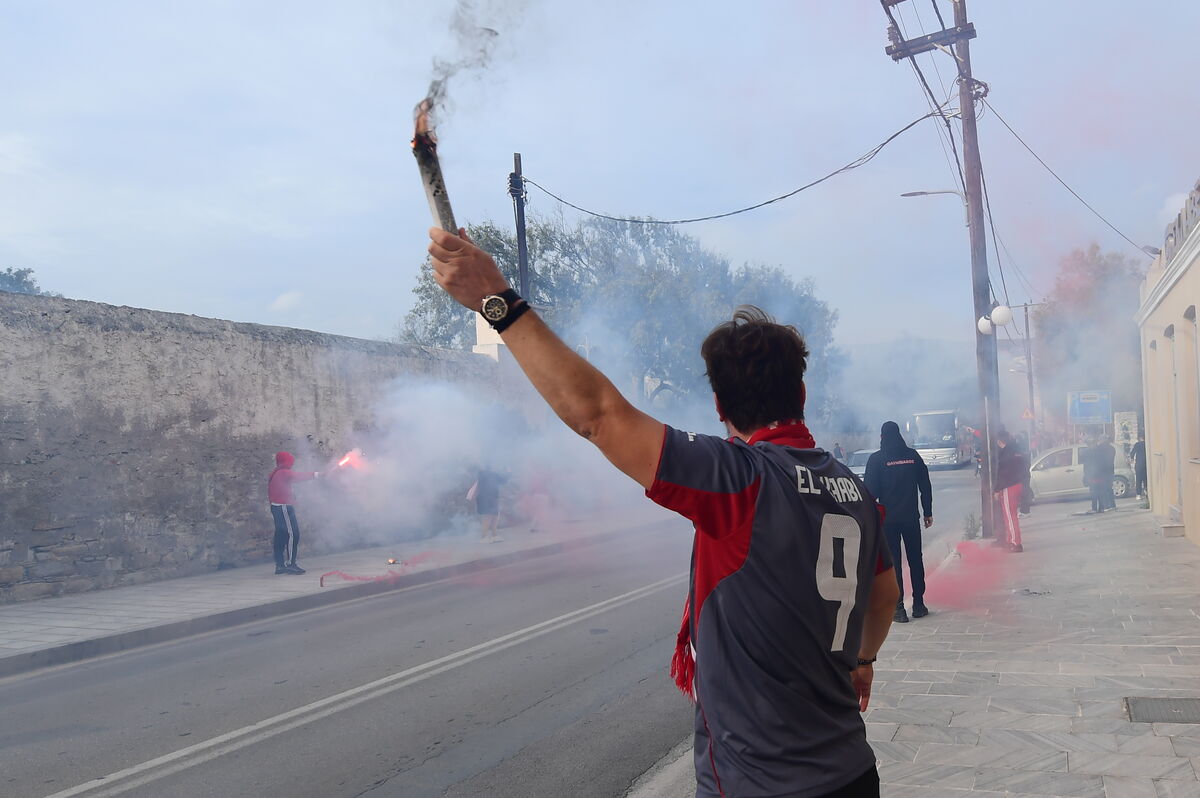 Εντυπωσιακά πλάνα από τη μετακίνηση των φιλάθλων του Ολυμπιακού στο νησί των Κυκλάδων και τη συνοδεία στο πούλμαν της ομάδας.