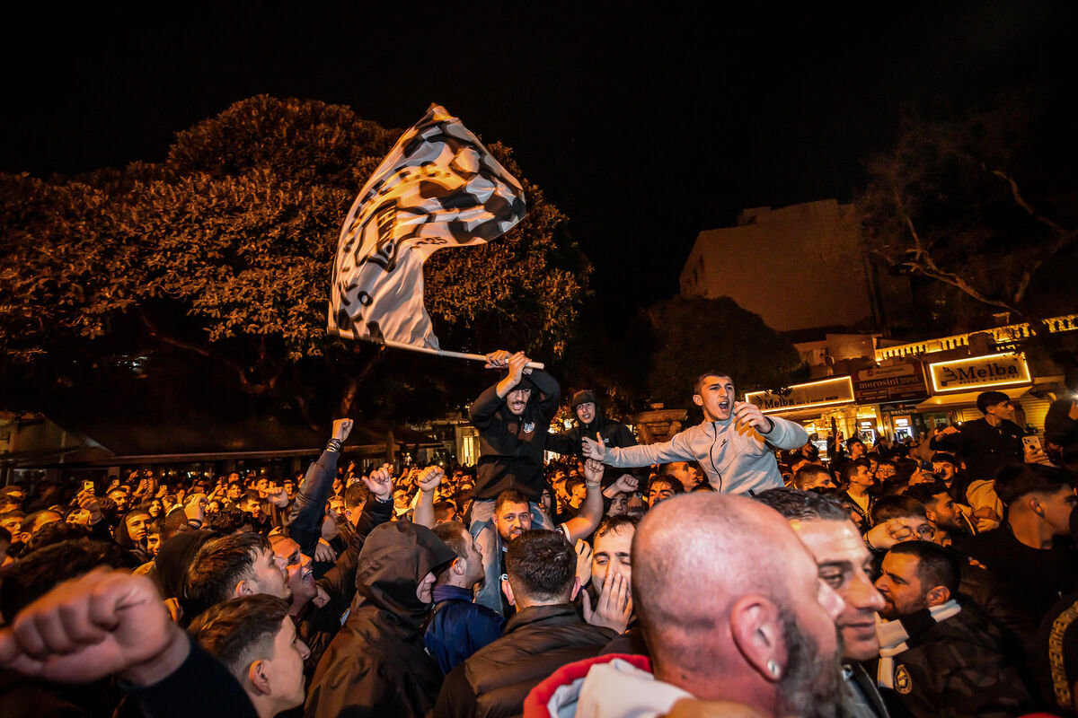 Παράλληλα, χιλιάδες φίλαθλοι της κρητικής ομάδας κατέκλυσαν το αεροδρόμιο για να δημιουργήσουν μια υποδοχή ηρώων στην ομάδα του Χρήστου Κόντη.