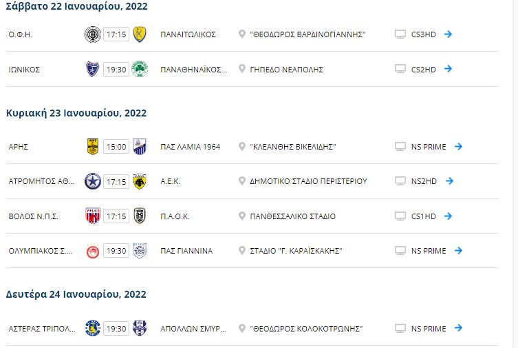 Ακολούθως, ο Ιωνικός υποδέχεται τον ΠΑΟ, όντας πλέον σε δύσκολη βαθμολογική θέση και θα στηριχθεί στη δύναμη της έδρας αλλά και στο ένστικτο της επιβίωσης. Οι δε «πράσινοι» θέλουν να μεταφέρουν την αγωνιστική κυριαρχία που δείχνουν εσχάτως στη Λεωφόρο και στα εκτός έδρας παιχνίδια τους, ώστε να παίρνουν και εκεί τα επιθυμητά αποτελέσματα. Ακολουθεί αναλυτικά το σημερινό πρόγραμμα και οι διαιτητές των αγώνων.