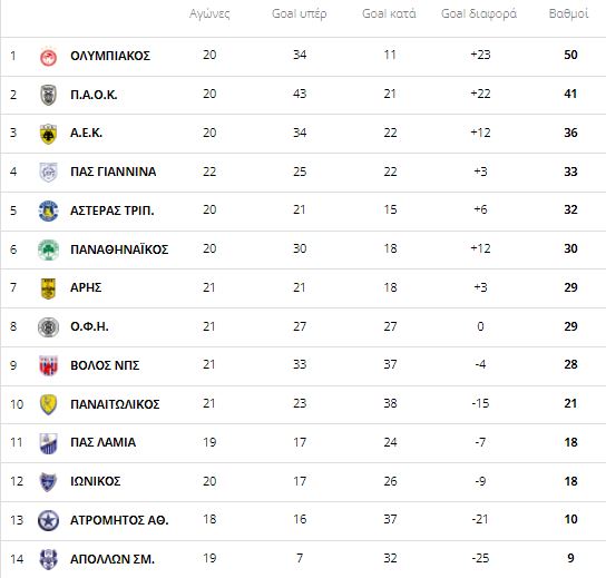 Από το πρόγραμμα της 22ης αγωνιστικής ξεχωρίζει το παιχνίδι της Τούμπας ανάμεσα σε ΠΑΟΚ και Παναθηναϊκό, ενώ στη Νίκαια δοκιμάζεται ο Ολυμπιακός και η ΑΕΚ φιλοξενεί τον Απόλλωνα Σμύρνης.
