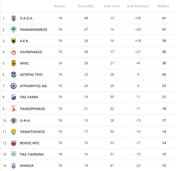 Με τρεις αγώνες ξεκινά η 19η αγωνιστική της Super League το Σάββατο (20/1). Το πρόγραμμα και η βαθμολογία.