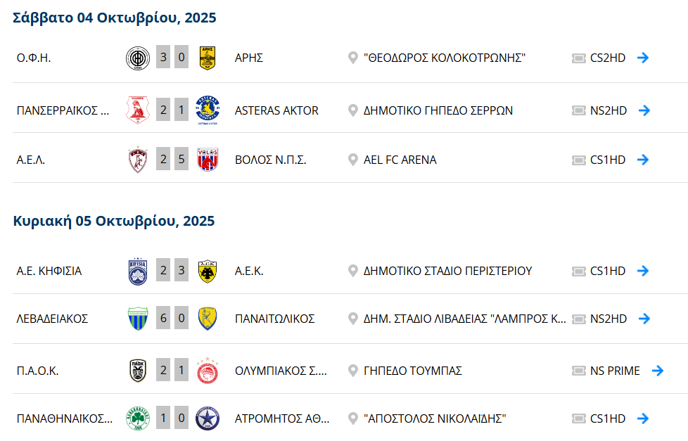 Οι Θεσσαλονικείς με τη νίκη επί των Πειραιωτών πέρασε στη δεύτερη θέση, ενώ ο εντυπωσιακός Λεβαδειακός διέλυσε τον Παναιτωλικό με 6-0 και βρίσκεται στην 4η θέση της βαθμολογίας παίζοντας εξαιρετικό ποδόσφαιρο.