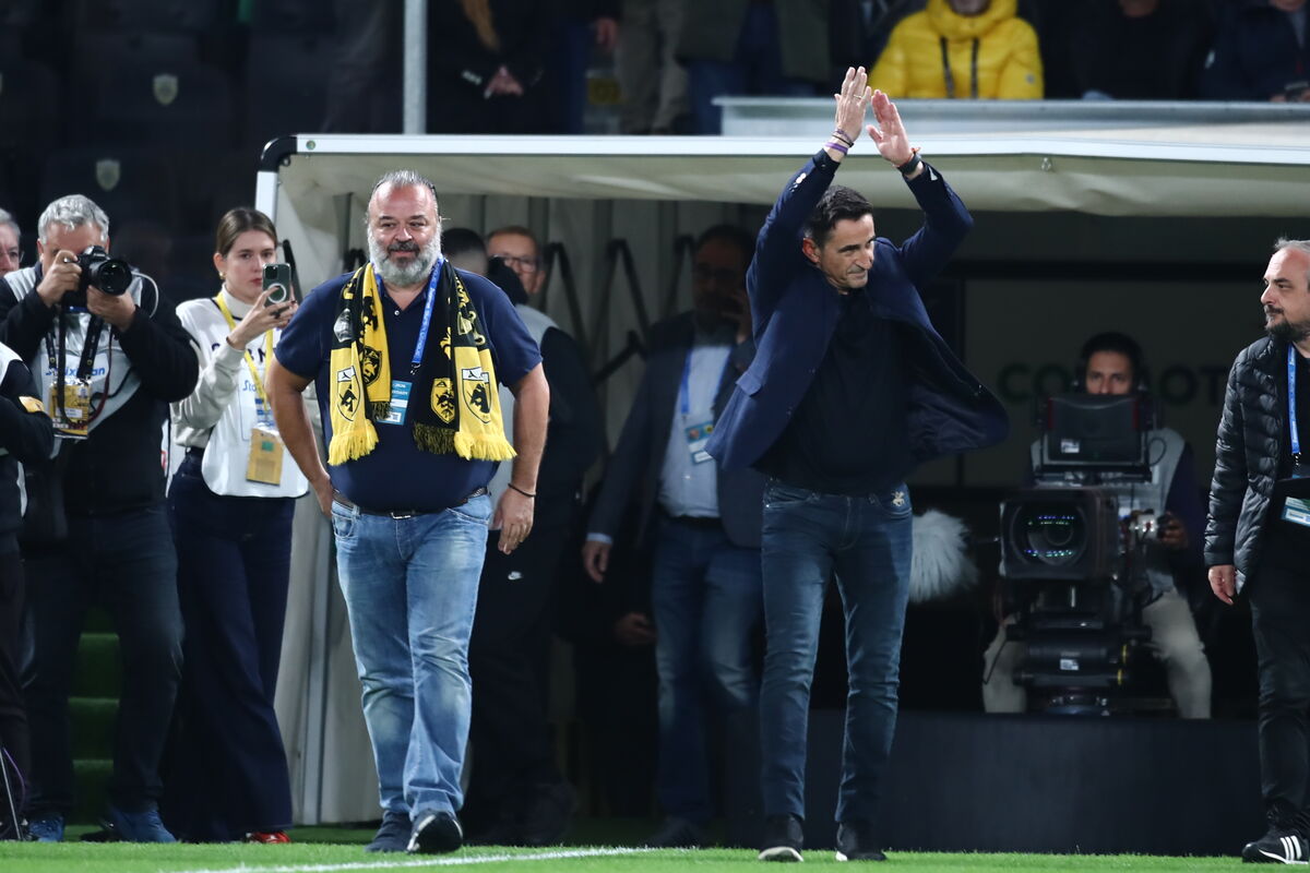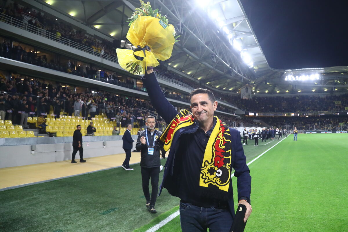 Ο Ισπανός προπονητής έζησε ωραίες στιγμές στη Νέα Φιλαδέλφεια γνωρίζοντας την αποθέωση από τον κόσμο της ΑΕΚ. Τιμήθηκε από τον ιδιοκτήτη της ΠΑΕ, Μάριο Ηλιόπουλο, ενώ οι φίλοι των «κιτρινόμαυρων» του πέρασαν στο λαιμό και ένα κασκόλ της ομάδας.