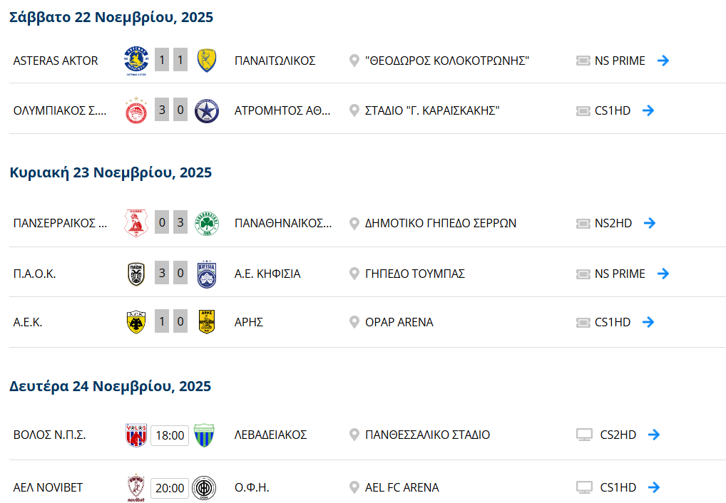 Ο Παναθηναϊκός πέρασε από τις Σέρρες επικρατώντας με 3-0 του Πανσερραϊκού, ο ΠΑΟΚ νίκησε με το ίδιο σκορ την Κηφισιά, ενώ η ΑΕΚ λύγισε δύσκολα τον Άρη με 1-0 στη Νέα Φιλαδέλφεια.