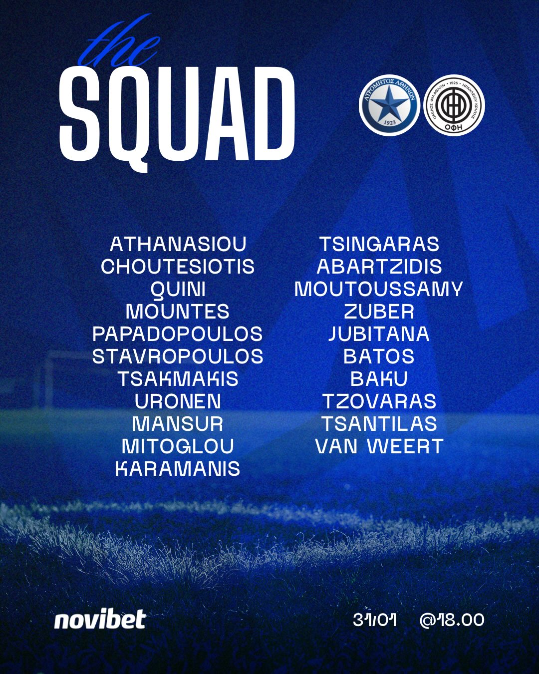 Παράλληλα, επιστρέφει στη διάθεση του προπονητή του ο Δημήτρης Σταυρόπουλος, που εξέτισε την τιμωρία του στην προηγούμενη αγωνιστική, κόντρα στον Παναθηναϊκό.