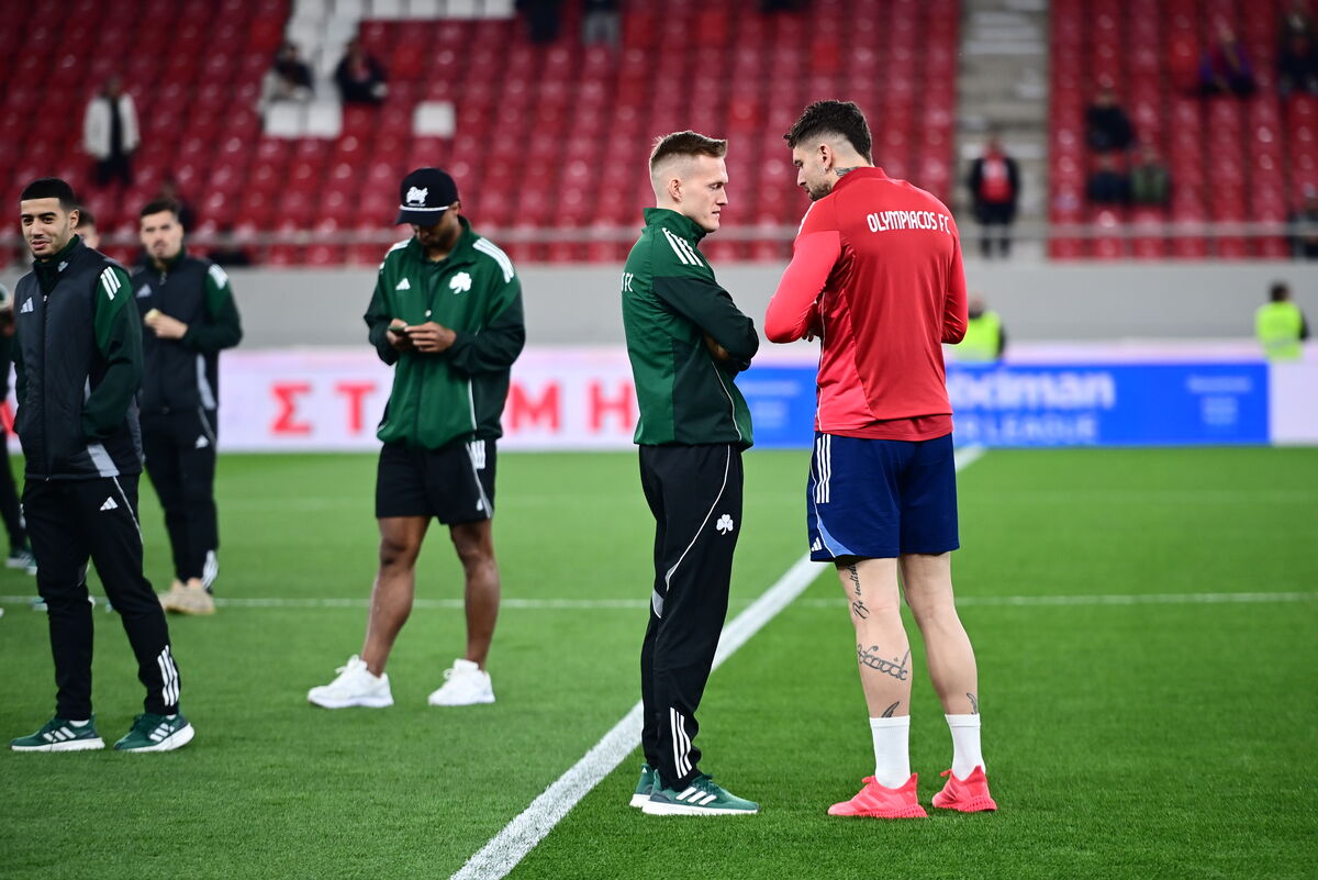 Στο «Γ. Καραϊσκάκης» έχουν φτάσει οι αποστολές Ολυμπιακού και Παναθηναϊκού ενόψει του ντέρμπι της 20ής αγωνιστικής. Όπως συμβαίνει σε αυτές τις περιπτώσεις ποδοσφαιριστές και μέλη των αποστολών των δύο ομάδων σχημάτισαν «πηγαδάκια» στον αγωνιστικό χώρο.