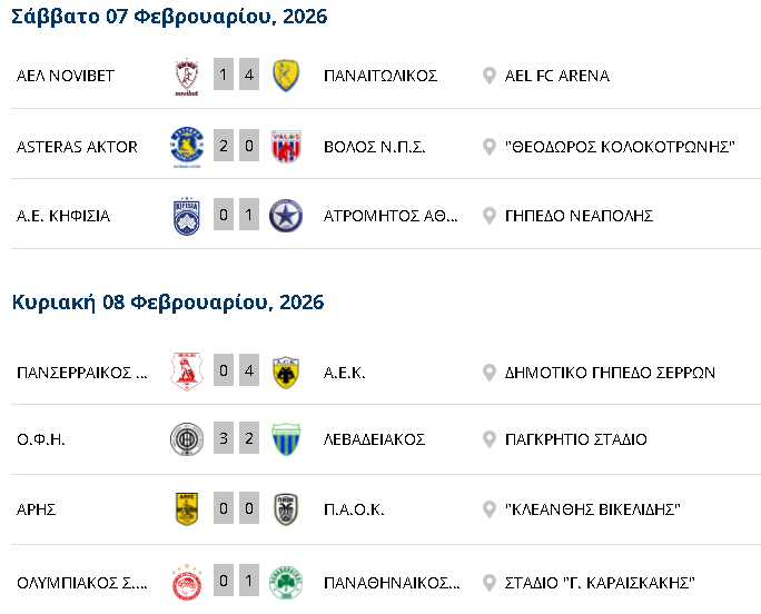 Διαβάστε πως έχει διαμορφωθεί η βαθμολογία μετά το τέλος της 20ής αγωνιστικής της Super League.