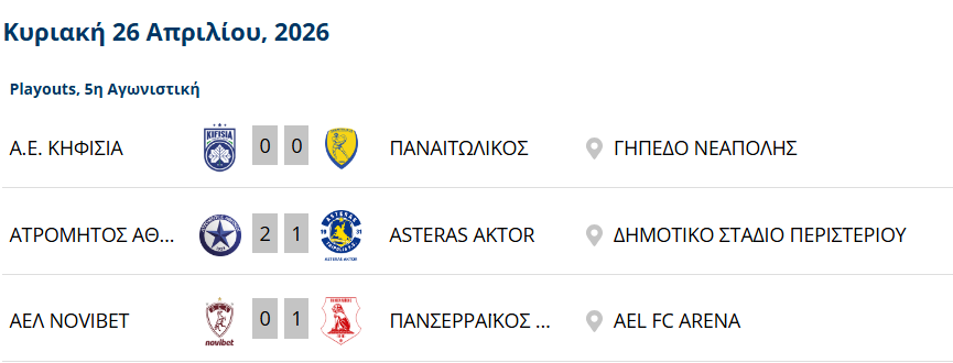 Κάπως έτσι μετά από αυτό το αποτέλεσμα η ΑΕΛ είναι ουραγός με τα «λιοντάρια» να βρίσκονται πάνω από τη ζώνη του υποβιβασμού και φυσικά η επόμενη αγωνιστική να παρουσιάζει τεράστιο ενδιαφέρον.