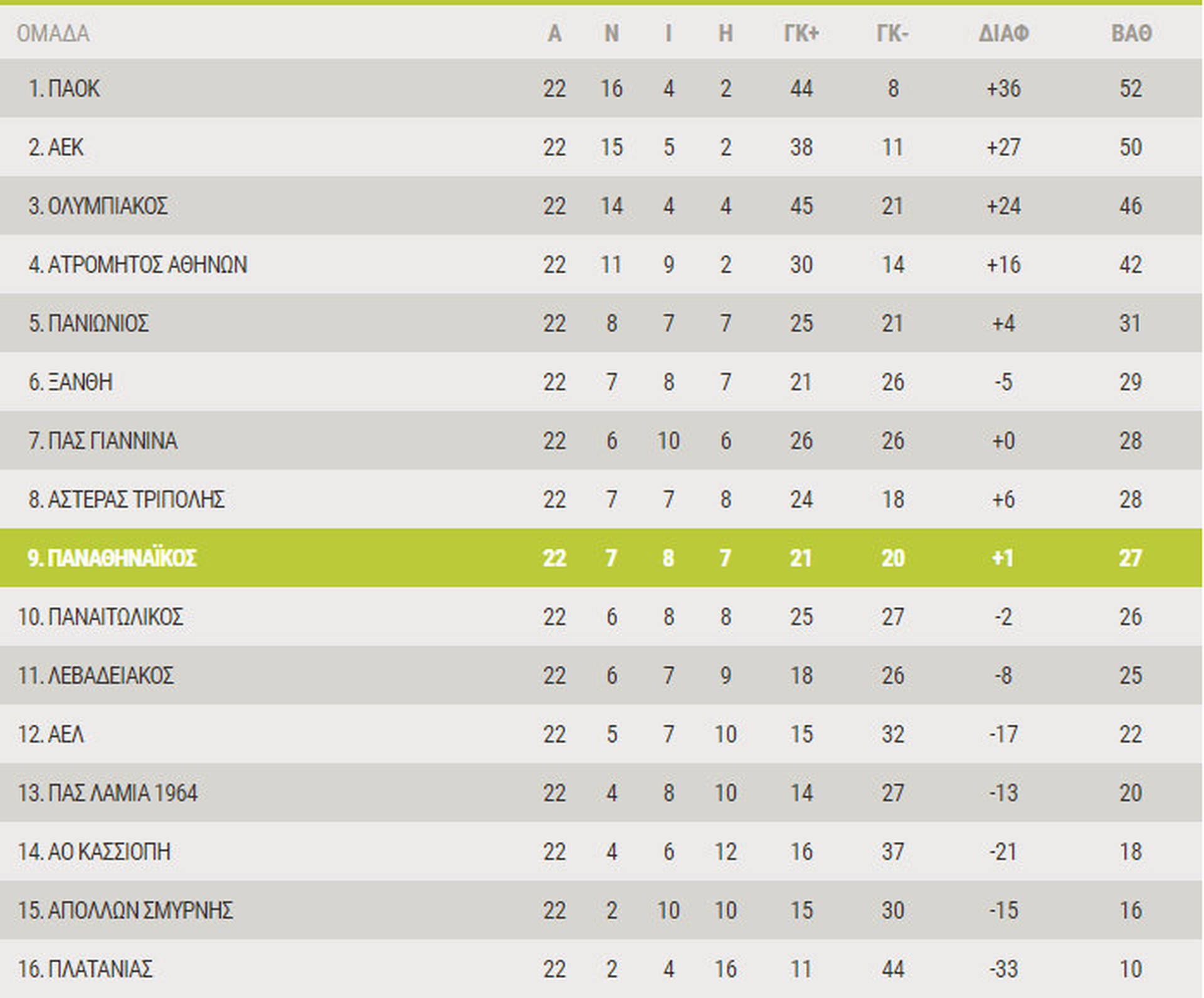 Οι πράσινοι έχουν σταματήσει να ανανεώνουν τη βαθμολογία μετά την 22η αγωνιστική...