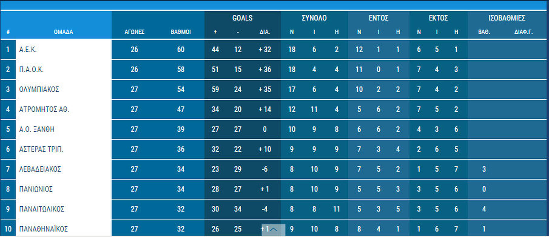Η ΑΕΚ έχει τη σωστή βαθμολογία. Βοηθάει και το γεγονός ότι είναι σε αυτή πρώτη...