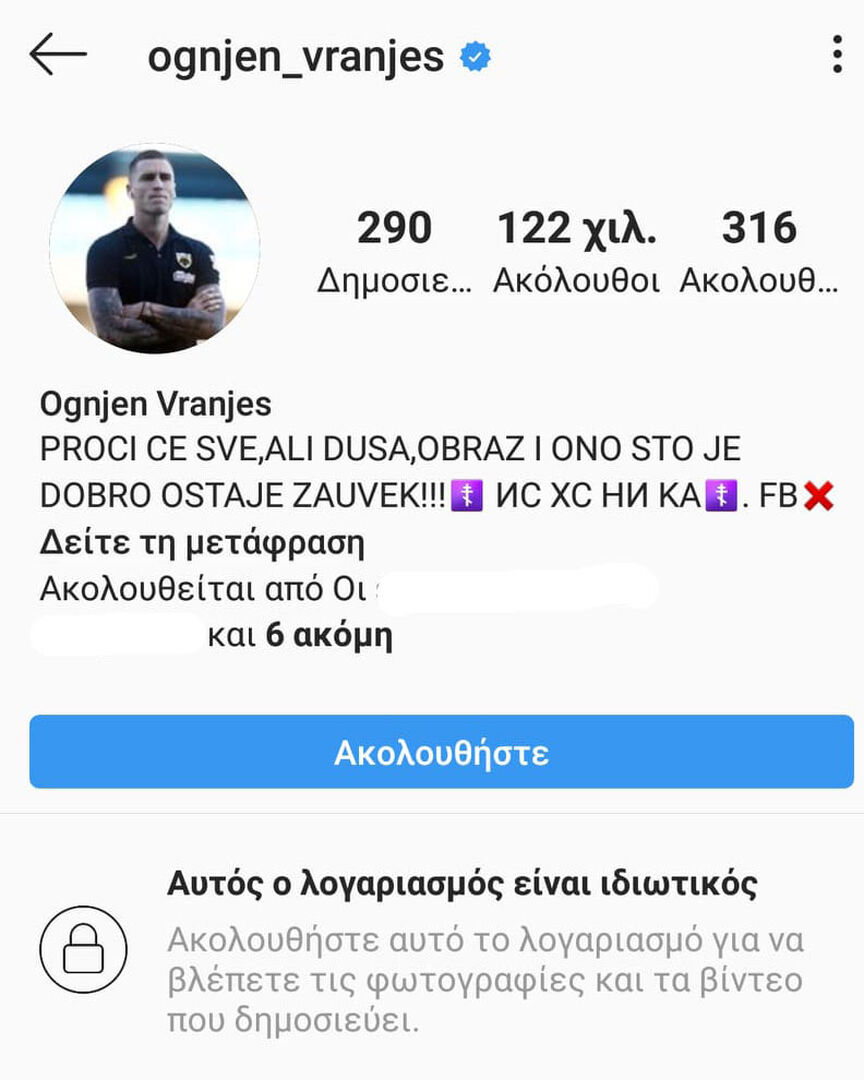 Ο Όγκνιεν Βράνιες μετά τον ντόρο που προκάλεσε με τις αναρτήσεις του αποφάσισε να κάνει ιδιωτικό το λογαριασμό του στο instagram.
