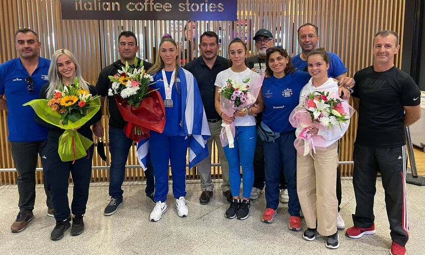 Στο αεροδρόμιο υποδέχθηκαν την αποστολή, ο γενικός γραμματέας της Ελληνικής Ομοσπονδίας Αρσης Βαρών, Πύρρος Δήμας, ο ομοσπονδιακός προπονητής, Χρήστος Τριφύλλης, καθώς επίσης φίλοι και συναθλητές των πρωταθλητών.