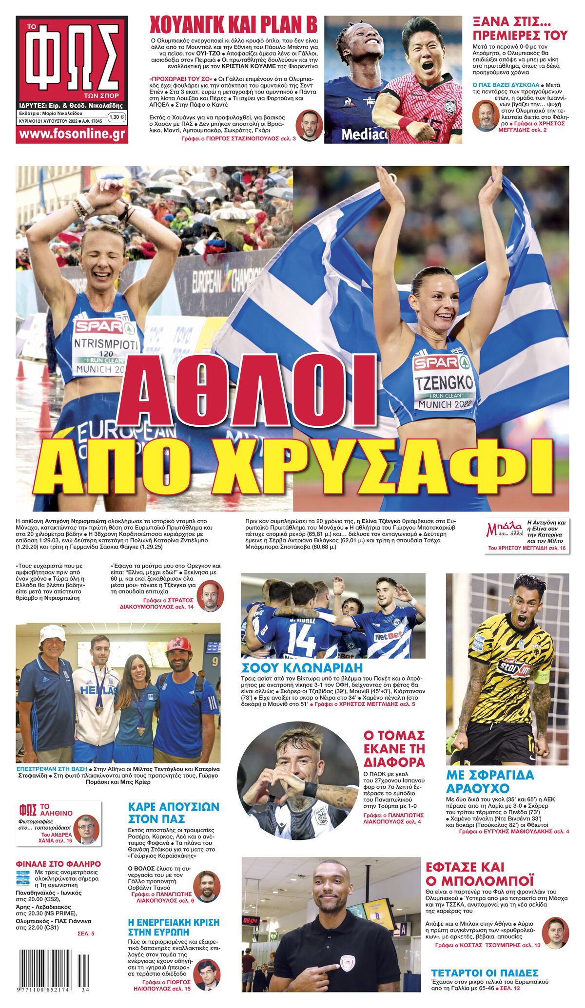 Η απίθανη Αντιγόνη Ντρισμπιώτη ολοκλήρωσε το ιστορικό νταμπλ στο Μόναχο, κατακτώντας την πρώτη θέση στο Ευρωπαϊκό Πρωτάθλημα και στα 20 χιλιόμετρα βάδην * Πριν καν συμπληρώσει τα 20 χρόνια της, η σπουδαία ακοντίστρια θριάμβευσε στο Ευρωπαϊκό Πρωτάθλημα του Μονάχου