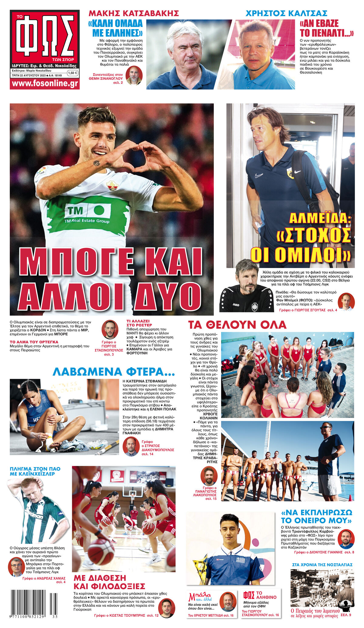 Πρώτη προπόνηση χθες για τους άνδρες και τις γυναίκες του Ολυμπιακού * Νέοι προπονητές, κοινοί στόχοι για τον Θρύλο * «Η χρονιά θα είναι πολύ δύσκολη και μεγάλη * Οι στόχοι είναι πάντα γνωστοί, ξέρουμε ότι ο Ολυμπιακός πάντα στοχεύει στο υψηλότερο» είπε ο Κροάτης προπονητής Χρβόγε Κόλιανιν * «Πάμε για τα πάντα, για όλους τους τίτλους, όπως κάθε χρόνο» δήλωσε ο «καπετάνιος» της γυναικείας ομάδας Δημήτρης Κραβαρίτης