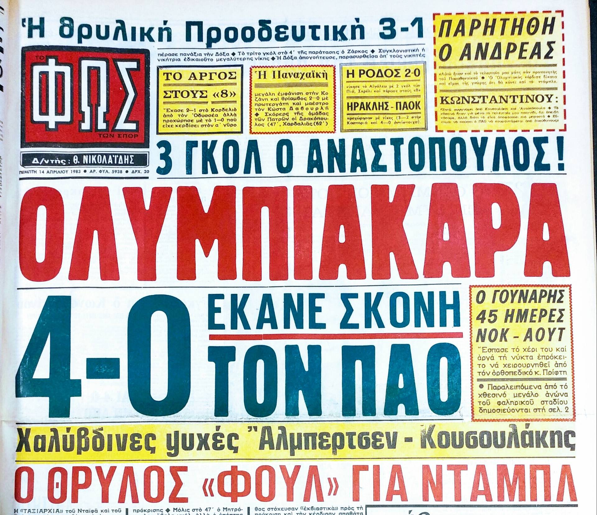 Σαν σήμερα το 1983, ο Ολυμπιακός επιβλήθηκε με 4-0 κόντρα στον Παναθηναϊκό και προκρίθηκε στους "8" του Κυπέλλου Ελλάδος με μεγάλο πρωταγωνιστή το Νίκο Αναστόπουλο!