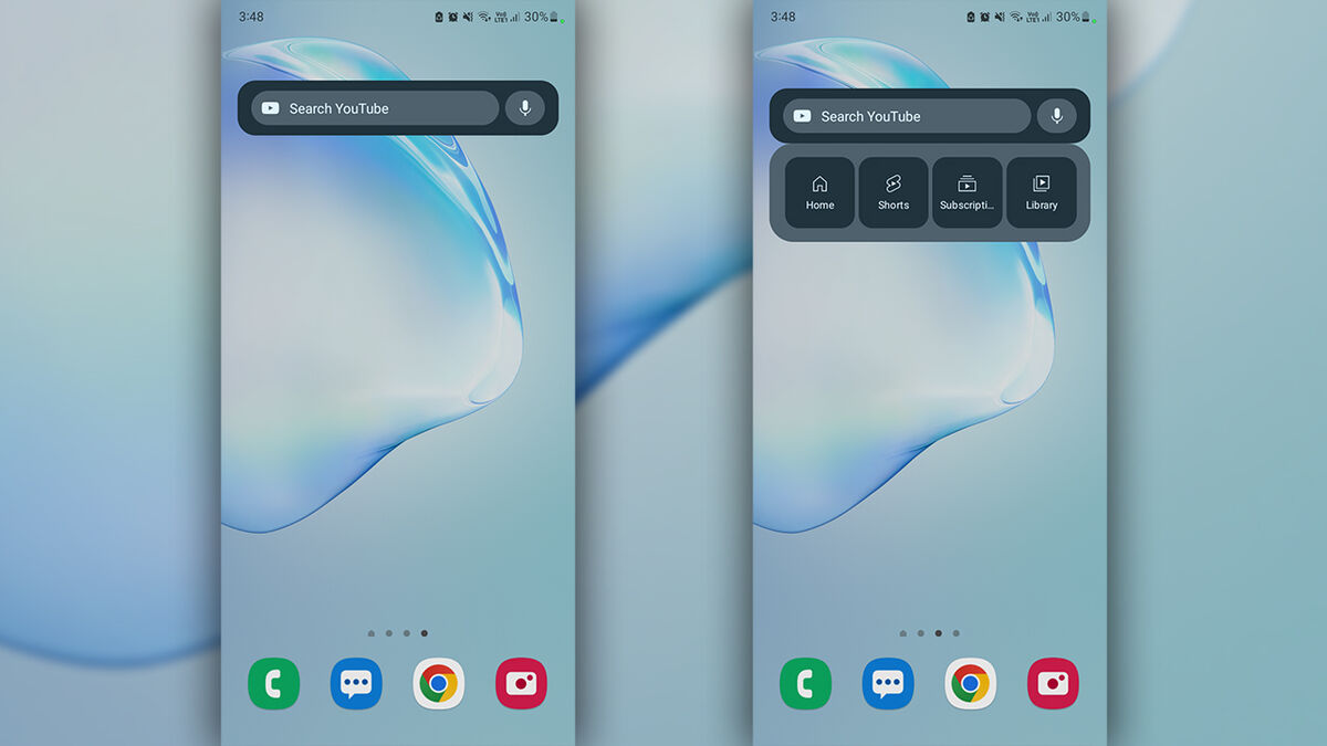 Περνώντας σε λεπτομέρειες, η YouTube εφαρμογή για το Android προσφέρει πλέον διάφορα widgets για την αρχική του κινητού σας, τα οποία προσφέρουν άμεση πρόσβαση σε διάφορες βασικές πτυχές της εμπειρίας, όπως για παράδειγμα οι συνδρομές, τα Shorts και η αναζήτηση. Συγκεκριμένα, το YouTube διαθέτει πλέον τα δύο εξής widgets: Quick Actions (3x3) και Search (4x1).