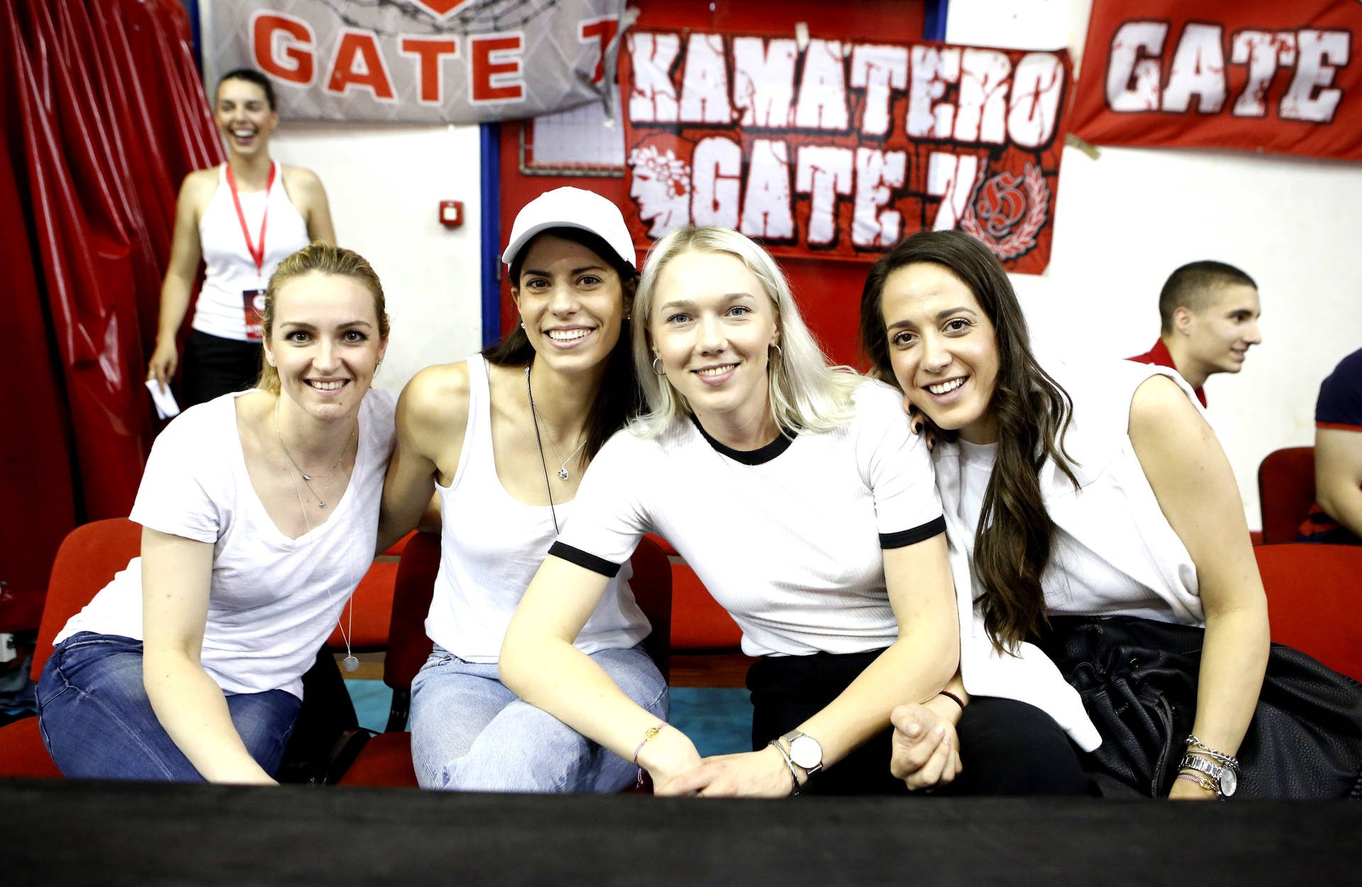 Οι Χίπε, Γιώτα, Λαμπρούση, Κονόμη, Κοκκινάκη αυτή τη φορά δεν έλαμψαν στο παρκέ αλλά με την παρουσία τους στην εξέδρα, αποσπώντας πολλά βλέμματα.