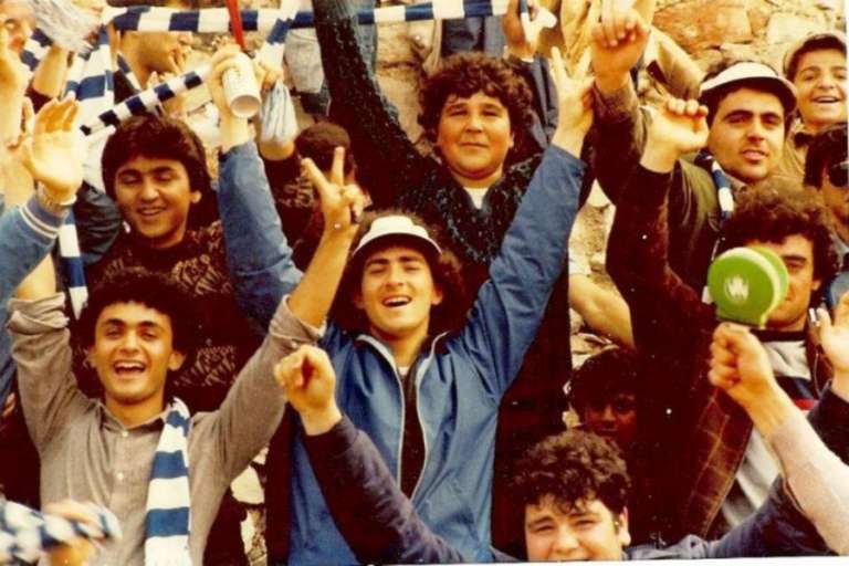 Επίσης σας παραχωρώ μία φωτογραφία από την εξέδρα του Εθνικού το 1981 όταν πηγαίναμε να ανέβουμε στην Β΄Εθνική του βόλεϊ. Πριν 40 χρόνια είμαι στο κέντρο της φωτογραφίας μαζί με φίλους Παναθηναϊκούς, Παοκτσήδες, Αεκτσήδες. Κάποιος κρατάει κλακέτα του Παναθηναϊκού, στα δεξιά μου με το κασκόλ διακρίνονται ο Βουλευτής της Νέας Δημοκρατίας Σταύρος Κελέτσης και από πάνω του ο Βασίλης Ουζουνίδης, αδελφός του Μαρίνου».