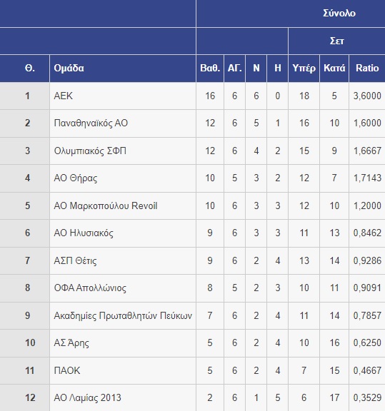 H BAΘΜΟΛΟΓΙΑ (σε 6 αγώνες)